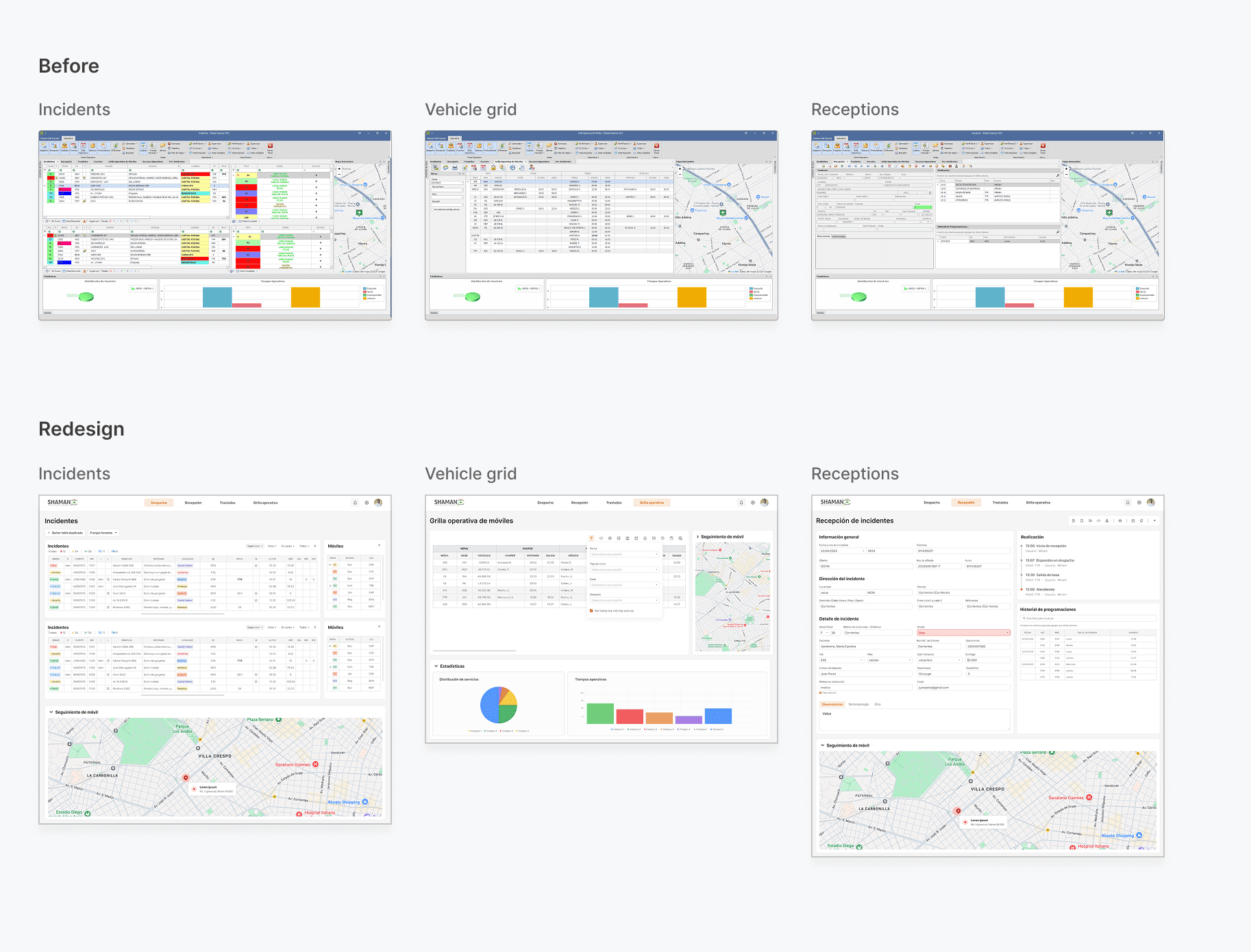 Shaman SGE is a medical emergency management system used by operators and dispatchers to handle incidents, coordinate vehicles, and monitor cases in real time. For this project, I worked as a freelance designer, specifically contracted for the redesign and adaptation of the system to its web version.
